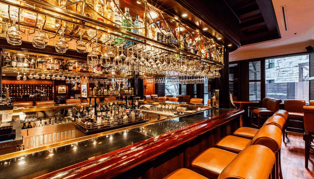 - 店の真ん中に大きなバー(カウンター)がドンと構えている