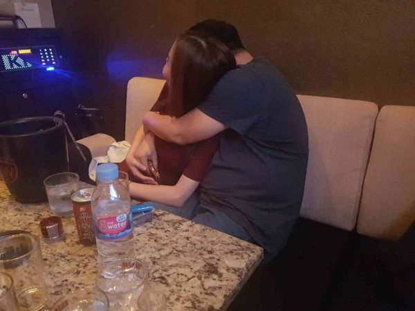 先程、指名した4番のアガシが横に座って、イチャイチャのお酌タイムが始まります。フルーツを切って食べさせてくれたり、洋酒をショットグラスで💘ラブショット。どんどん距離感が近づきます。